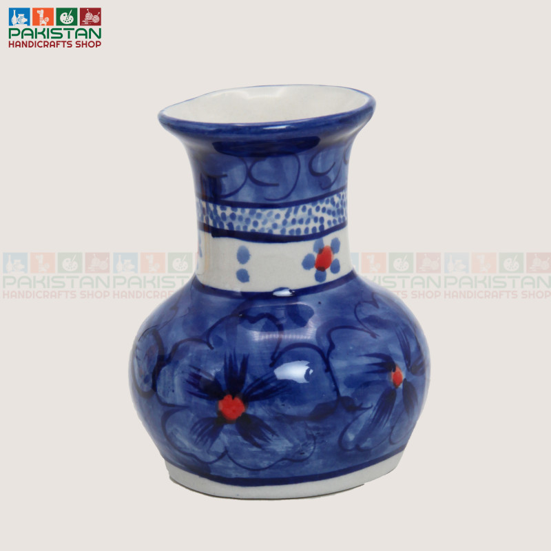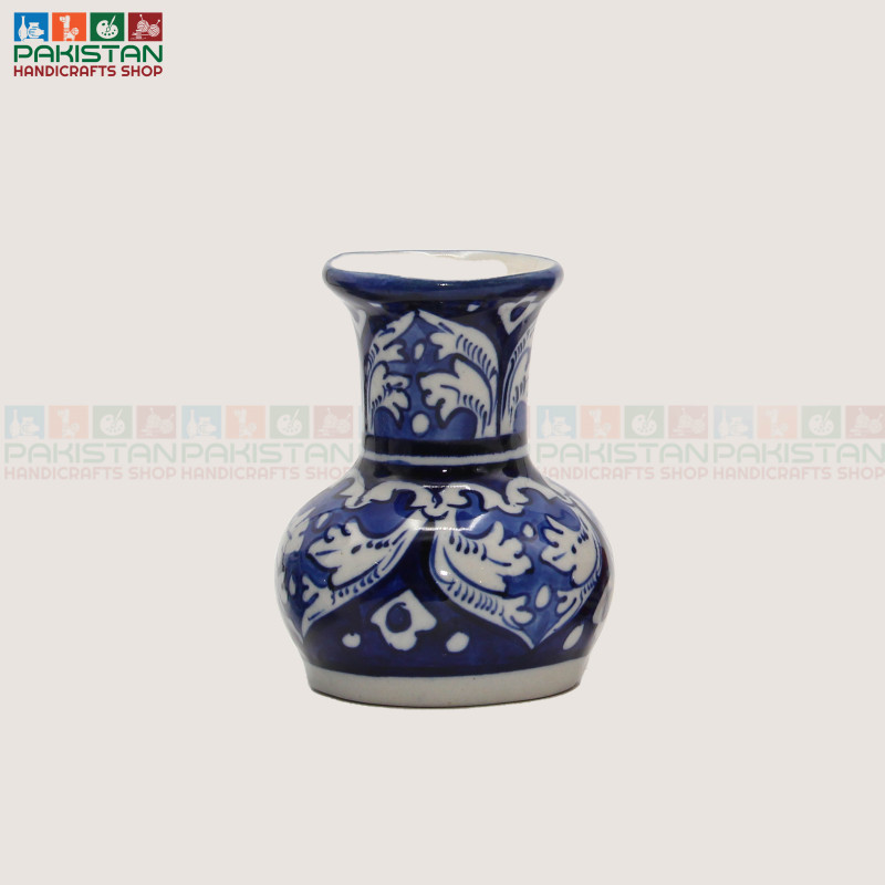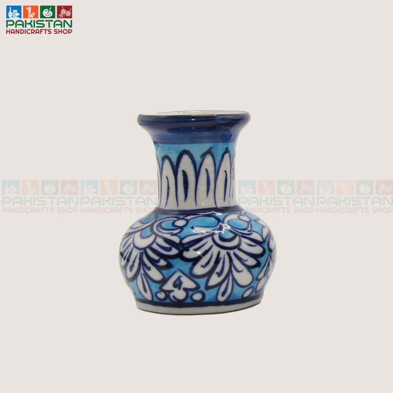 The design and detailing of the Blue Pottery Small Vase may vary slightly, as each piece is uniquely crafted.