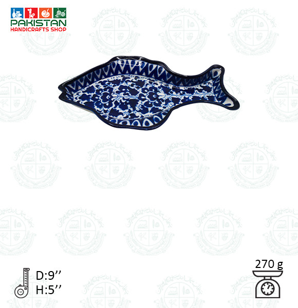 Blue Pottery Fish Dish Small