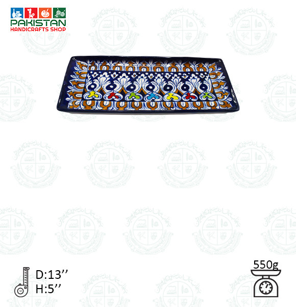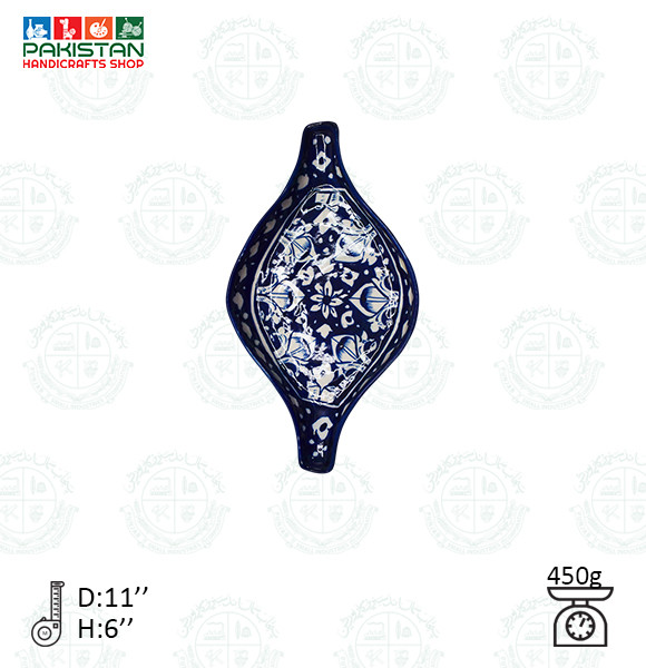 Base Shape is made in ceramics. Tones of blue colors are applied to decorate the artifacts with traditional floral motifs. Sometimes deep yellow is added for creating interest. Presently with the introduction of hotel ware crockery, designs are customized & henceforth a variety of designs with multiple themes are seen in the market.
