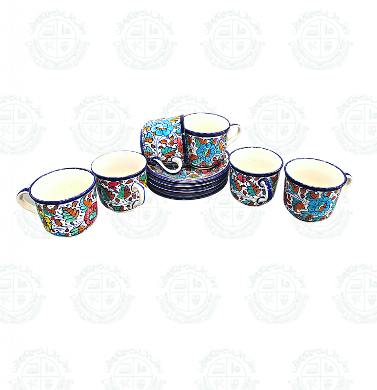 Base Shape is made in ceramics. Tones of blue colors are applied to decorate the artifacts with traditional floral motifs. Sometimes deep yellow is added for creating interest. Presently with the introduction of hotel ware crockery, designs are customized & henceforth a variety of designs with multiple themes are seen in the market.