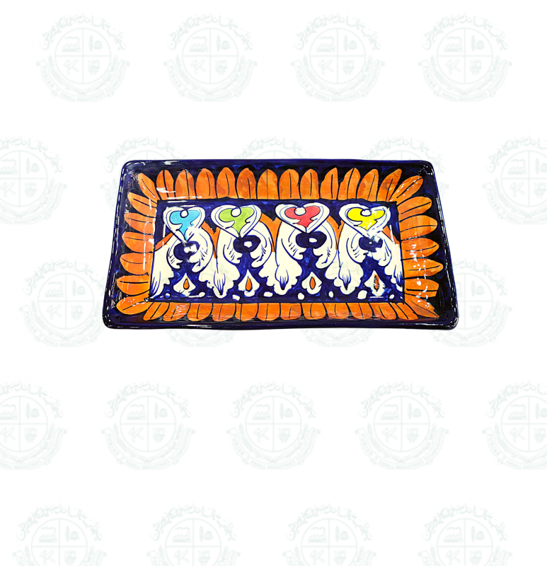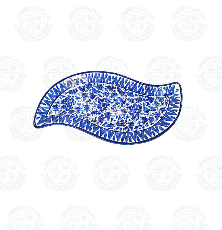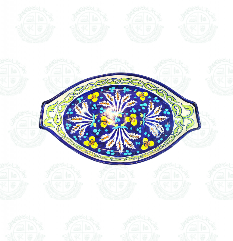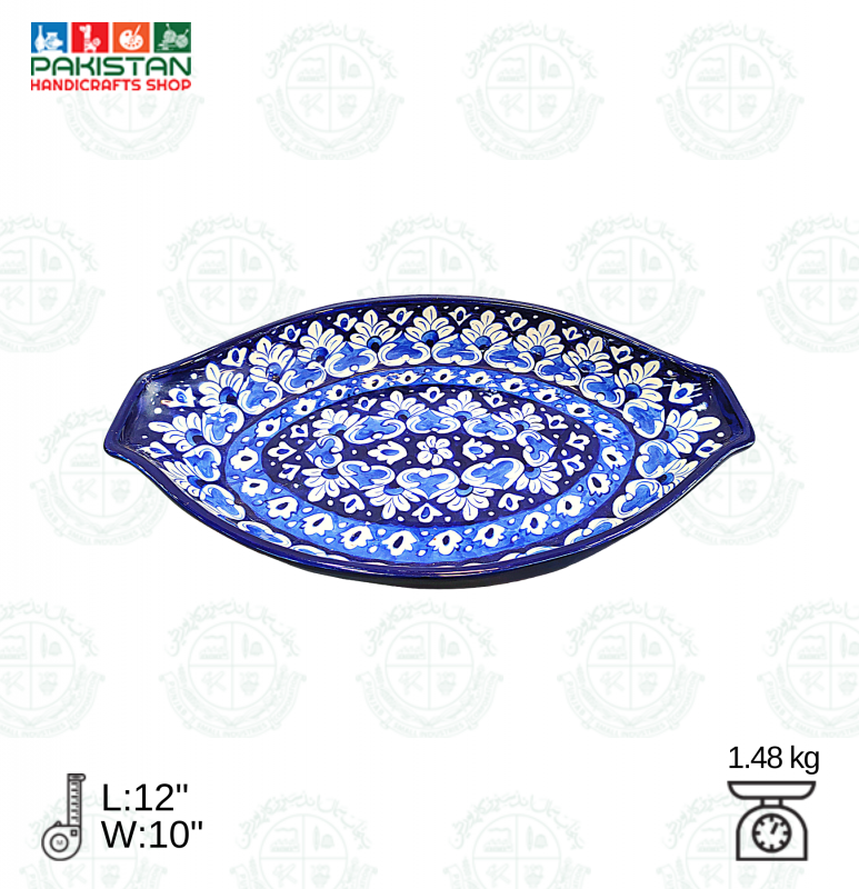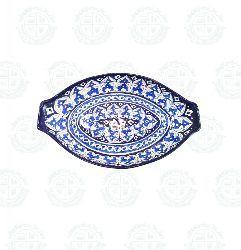Base Shape is made in ceramics. Tones of blue colors are applied to decorate the artifacts with traditional floral motifs. Sometimes deep yellow is added for creating interest. Presently with the introduction of hotel ware crockery, designs are customized & henceforth a variety of designs with multiple themes are seen in the market.