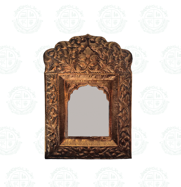 Lend a traditional touch to your home with this Copper Frame Mirror from Pakistan Handicrafts Shop Bahawalpur. Designed in an arch shape, this metal-frame mirror showcases a brass finish that complements both your modern and traditional decor. Mount this arch-shape mirror on the wall of your entryway or living room and decorate the tabletop with a vase, books and other decorative items to complete the look of your space.