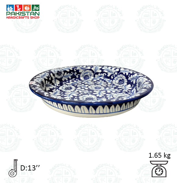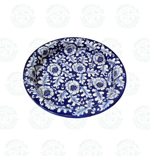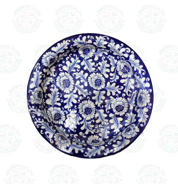 Base Shape is made in ceramics. Tones of blue colors are applied to decorate the artifacts with traditional floral motifs. Sometimes deep yellow is added for crating interest.