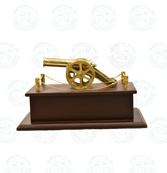 Gun Brass Wood Base Golden