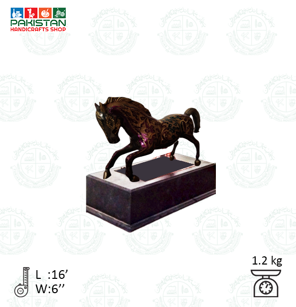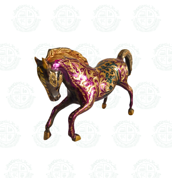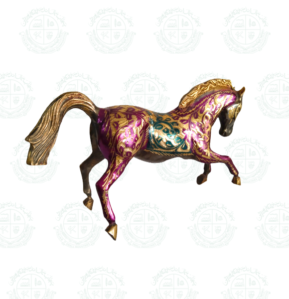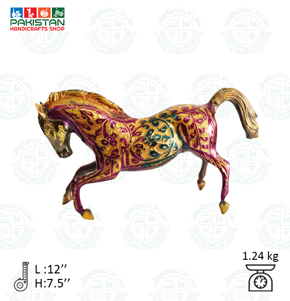 A beautiful decorative horse DM statue. Some wear with a nice patina, but this is old-age. It is for those who are in harmony with horse animals. Golden color painted with metal. Very decorative and nice to display in your library or any room. It can be displayed on a desk or show shelf.