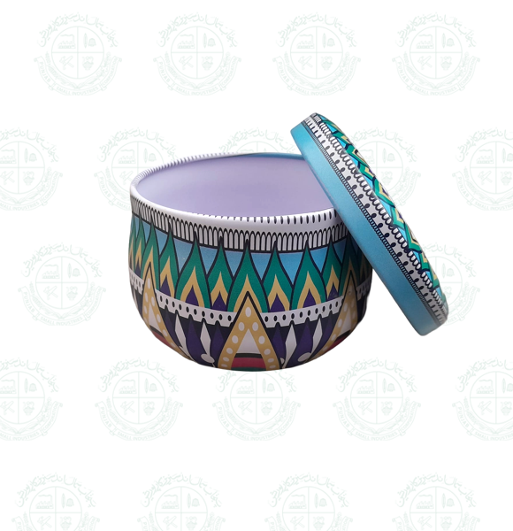 A beautifully handcrafted jewelry box made in Pakistan, showcasing traditional artistry with vibrant colors and intricate detailing. Perfect for storing your precious ornaments while adding a touch of elegance to your décor. An ideal gift for loved ones or a charming keepsake for yourself.