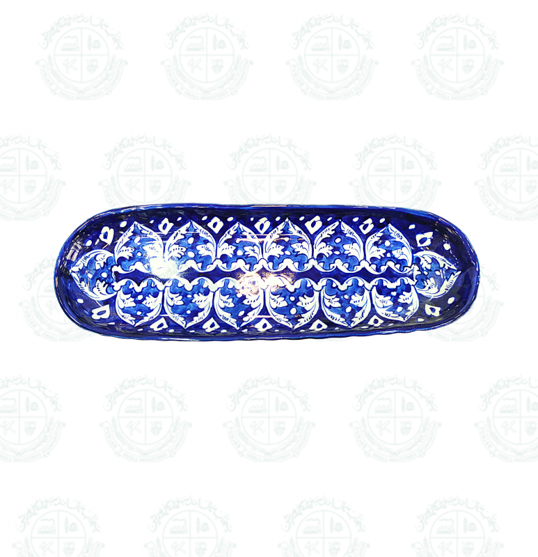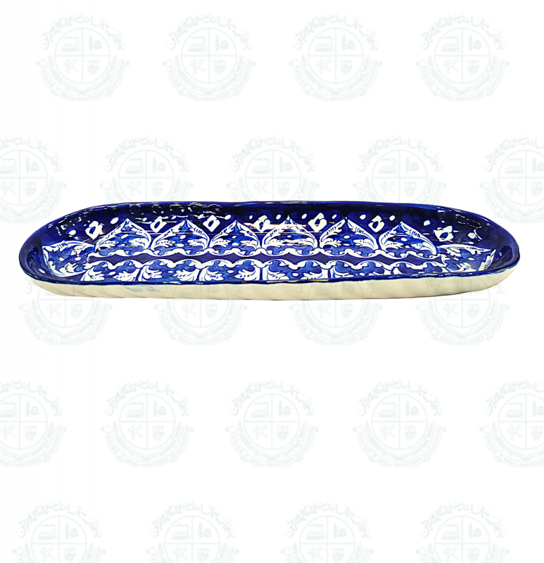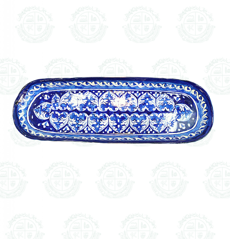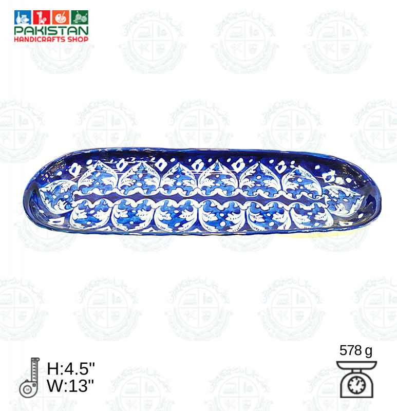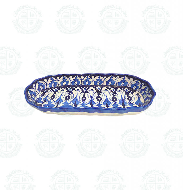 Base Shape is made in ceramics. Tones of blue colors are applied to decorate the artifacts with traditional floral motifs. Sometimes deep yellow is added for creating interest. Presently with the introduction of hotel ware crockery, designs are customized & henceforth a variety of designs with multiple themes are seen in the market.