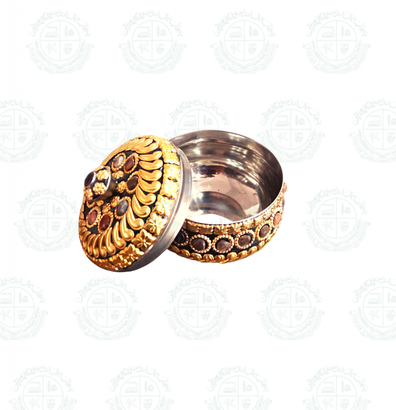 Molding and casting, Chiseling, Engraving, and Beat work are the major techniques employed in making the artifacts. Floral as well as geometric motifs are used to embellish the artifacts. A variety of products from decorative to utility items are produced.