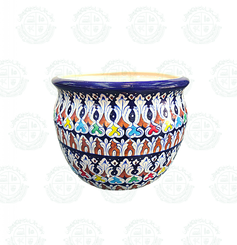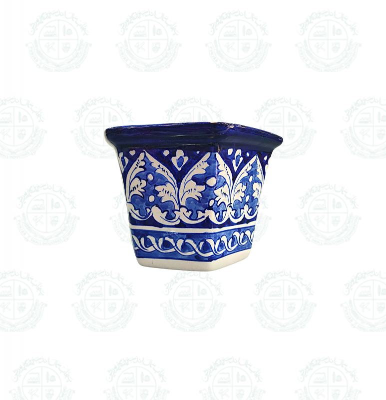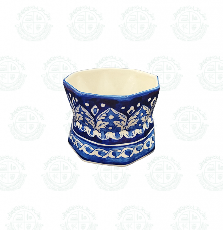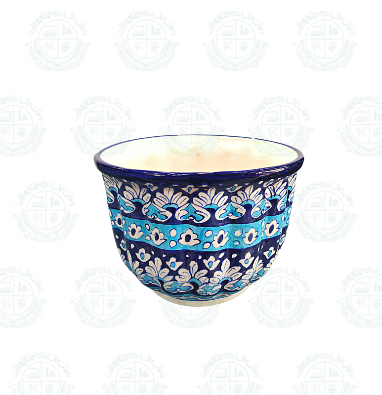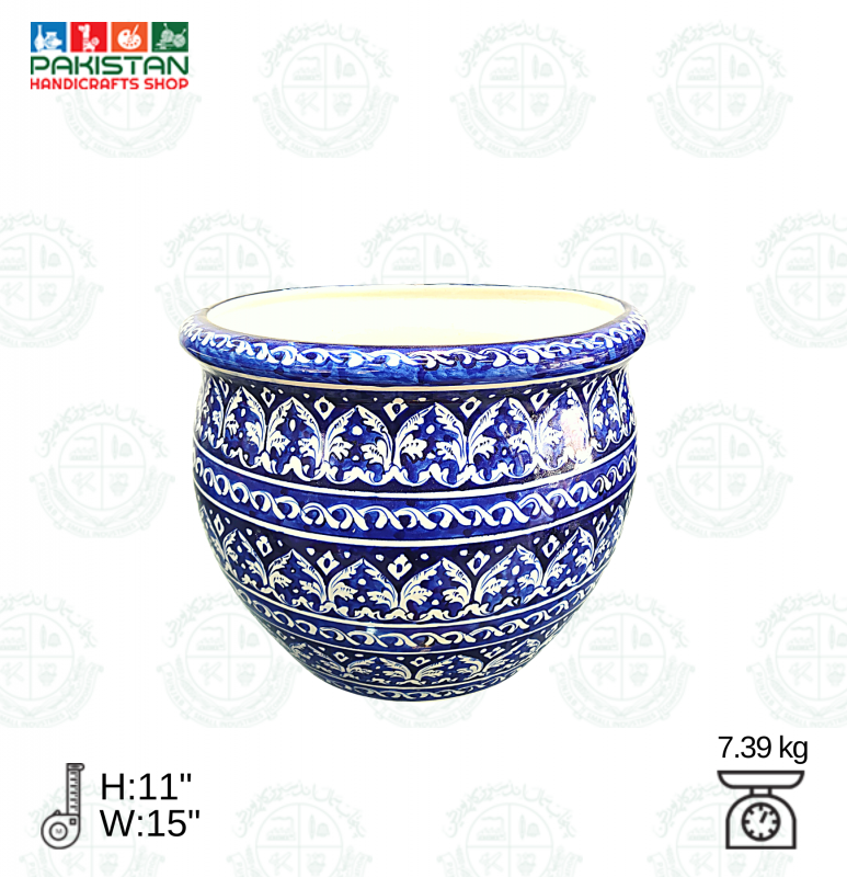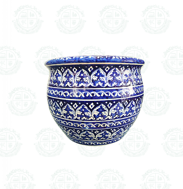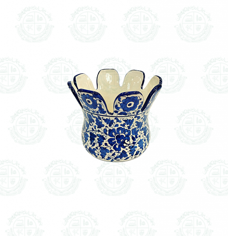Base Shape is made in ceramics. Tones of blue colors are applied to decorate the artifacts with traditional floral motifs. Sometimes deep yellow is added for creating interest. Presently with the introduction of hotel ware crockery, designs are customized & henceforth a variety of designs with multiple themes are seen in the market.