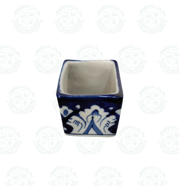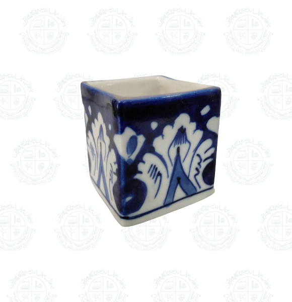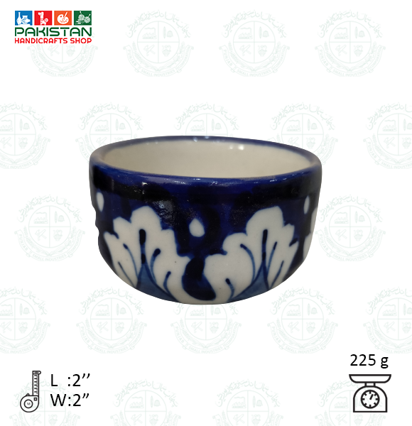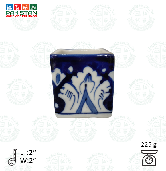 Base Shape is made in ceramics. Tones of blue colors are applied to decorate the artifacts with traditional floral motifs. Sometimes deep yellow is added for crating interest.