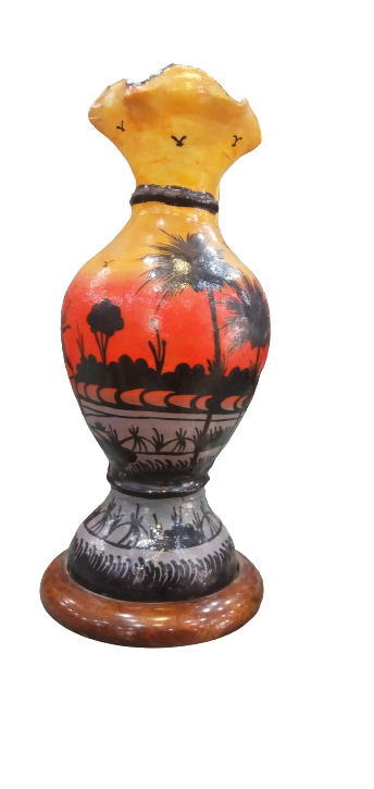 | Multan is the House of Camel Skin Crafts. Processed Camel Skin is pasted on a plaster of paris mold to give it the desired shape. After wards "kashi" work is done in a variety of colors. Most common articles produced in camel skin are Table Lamps, Flower Vases, Animals Etc. |