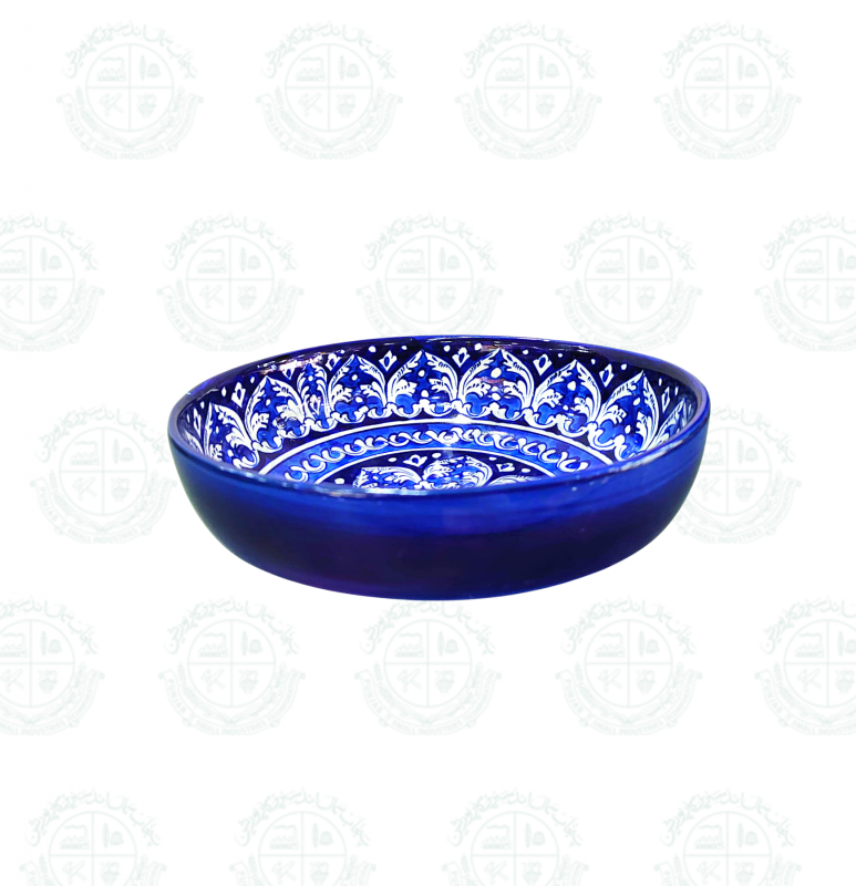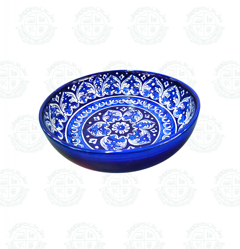 Base Shape is made in ceramics. Tones of blue colors are applied to decorate the artifacts with traditional floral motifs. Sometimes deep yellow is added for creating interest. Presently with the introduction of hotel ware crockery, designs are customized & henceforth a variety of designs with multiple themes are seen in the market.