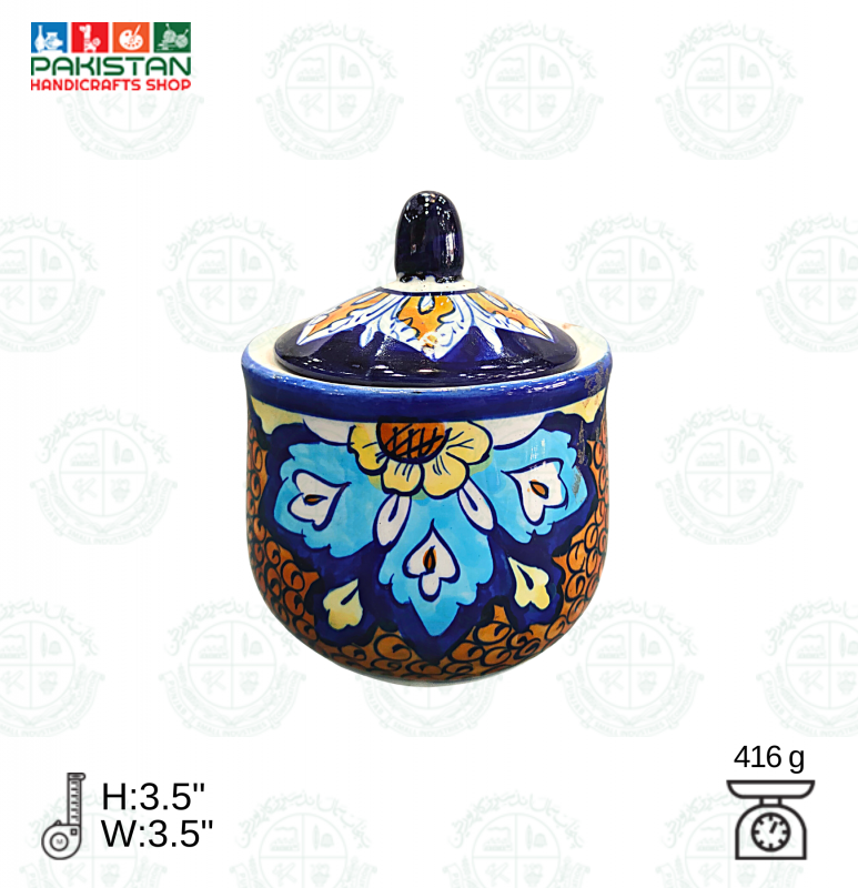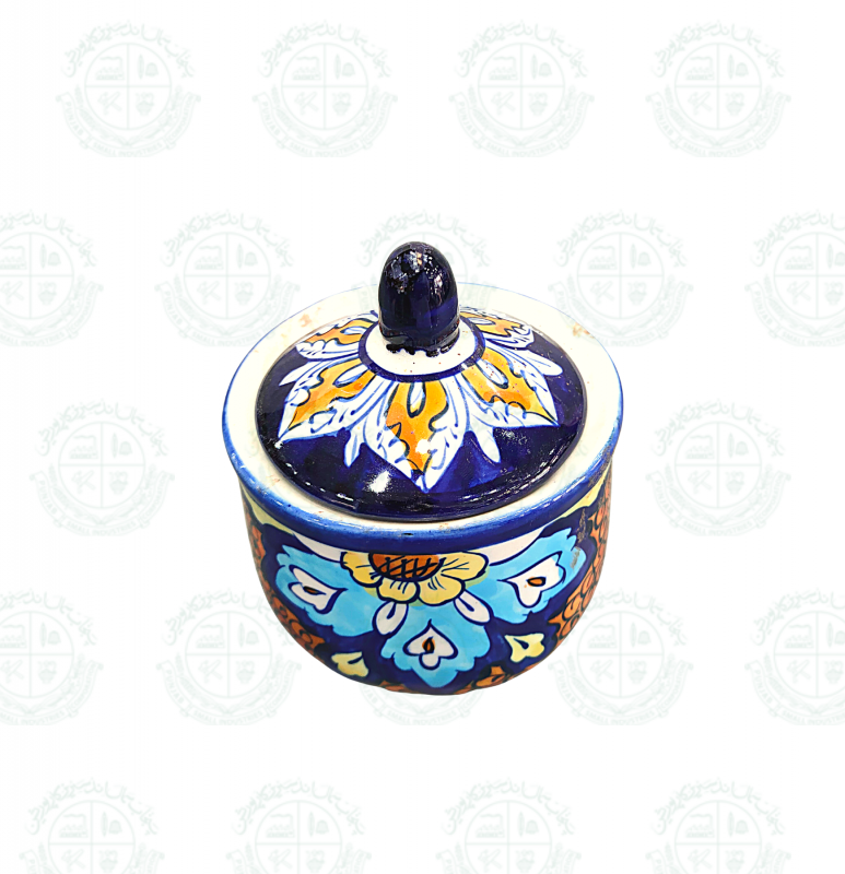 Base Shape is made in ceramics. Tones of blue colors are applied to decorate the artifacts with traditional floral motifs. Sometimes deep yellow is added for creating interest. Presently with the introduction of hotel ware crockery, designs are customized & henceforth a variety of designs with multiple themes are seen in the market.