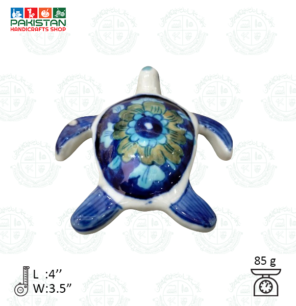Base Shape is made in ceramics. Tones of blue colors are applied to decorate the artifacts with traditional floral motifs. Sometimes deep yellow is added for crating interest.